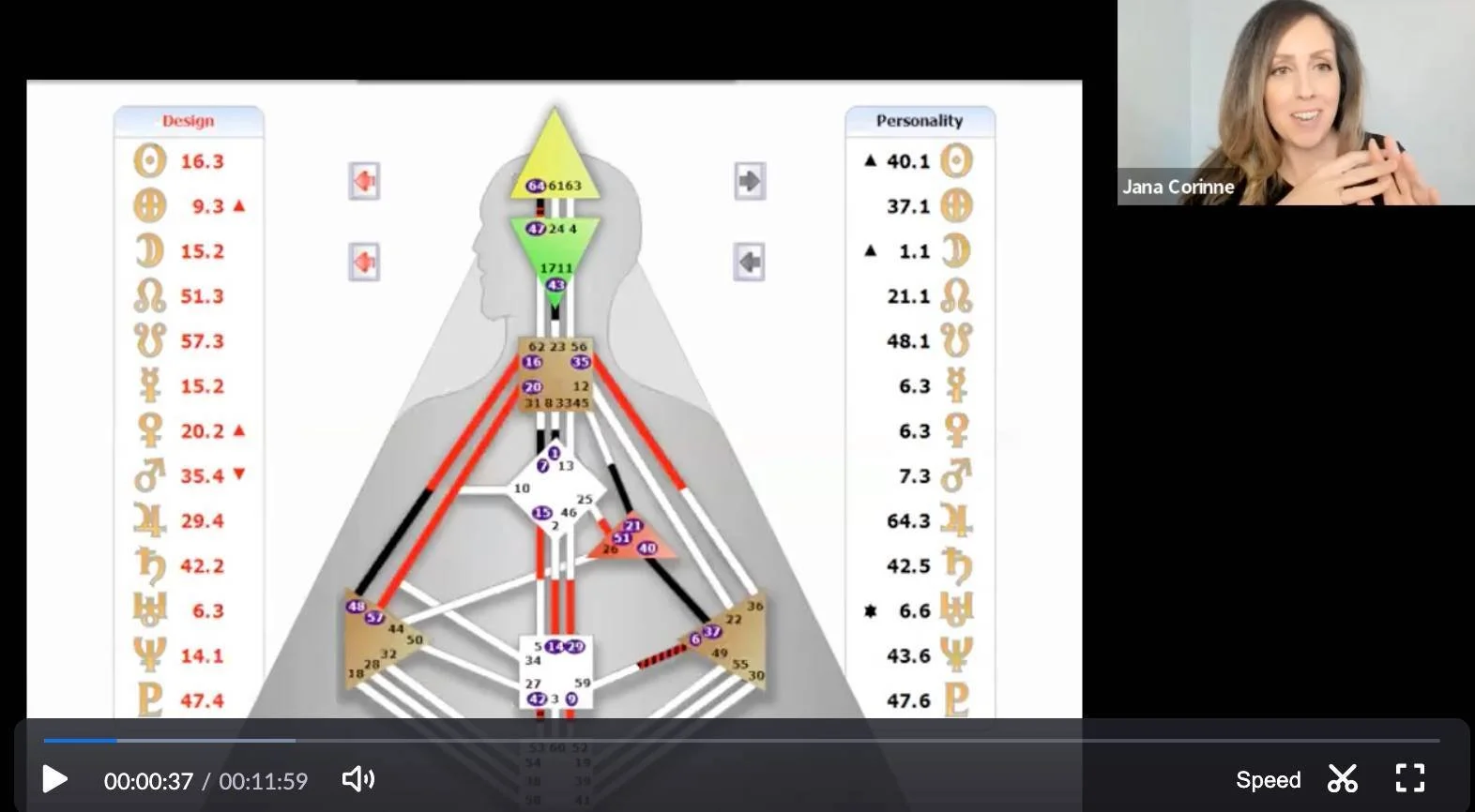 Your Profile: The two archetypes that you embody. On your personality (conscious side) and your design (subconscious side). This will explain how you learn and how you externalize that knowledge and wisdom. This is often how others perceive you.